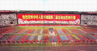第三屆全運會的比賽項目有:足球、籃球、排球、乒乓球、羽毛球、網(wǎng)球、棒球、女子壘球、手球、田徑、體操、技巧、游泳、跳水、水球、劃船(包括賽艇、皮艇、劃艇)、舉重、射擊、射箭、擊劍、武術、自行車(包括公路自行車和賽車場自行車)、中國式摔跤、棋類(包括圍棋、中國象棋和國際象棋)、冰球、速度滑冰、花樣滑冰、滑雪共28項。表演項目有馬術、秋千、跳板、民族摔跤、飛機跳傘、航空模型、航海模型、水上摩托挺、摩托車和幼兒體育。