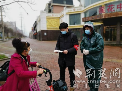 荊楚網(wǎng)客戶端—荊楚網(wǎng)消息(通訊員范先機、 陳春義 、 張劍)3月9日,鄂州市壽昌社區(qū)的街道異常寧靜,市教育局防疫突擊隊穿著雨衣堅守在崗位。掛點壽昌社區(qū)鄂州市人大副主任胡清芬向突擊隊豎起了大拇指:“你們用擔(dān)當與執(zhí)著織牢社區(qū)抗擊疫情防線,維護社區(qū)的安寧。我代表社區(qū)居民感謝你們!”