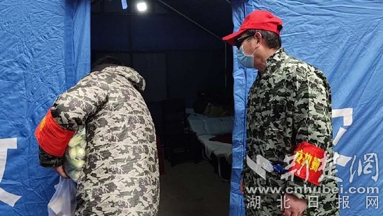 王桂華在設(shè)置小區(qū)關(guān)卡。鄂州市軍隊(duì)離退休干部休養(yǎng)所供圖
