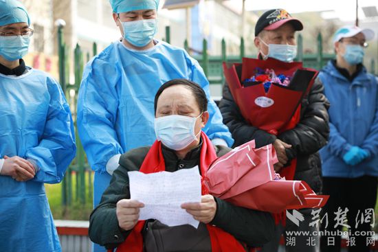 今年59歲的陳某,是一名小學(xué)教師,身患糖尿病多年,也是一名重癥患者。在接受隔離治療28天后,他坐在輪椅上出院了。面對(duì)眼前的白衣天使們,陳某掏出一封感謝信大聲朗讀:“感謝你們!你們的恩情比天高,比海深,沒(méi)有你們就沒(méi)有我的第二次生命……”