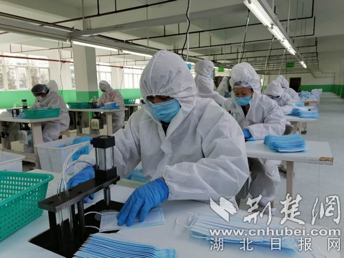 荊楚網(wǎng)客戶端——荊楚網(wǎng)消息(記者陶慧君 通訊員程良友)3月10日上午,記者在大冶市百世吉有限公司的口罩生產(chǎn)車間內(nèi)看到,穿著防護(hù)服的工人們在加班加點(diǎn)生產(chǎn)口罩,支援防疫。原料經(jīng)過打片成型、焊接掛耳、成品檢測和包裝后,一只只口罩整裝待發(fā)。