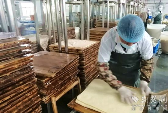 工人在豆制品生產(chǎn)車間工作。(通訊員供圖)