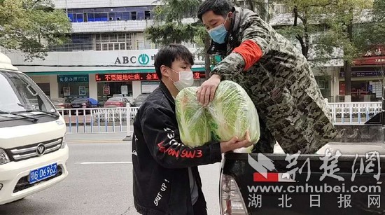 繆檸駿搬運(yùn)給居民的蔬菜。荊楚網(wǎng)記者 熊子璇 攝