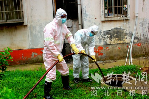 國資公司突擊隊幫助孔雀苑社區(qū)疏通管道。通訊員供圖