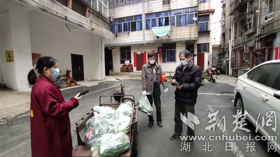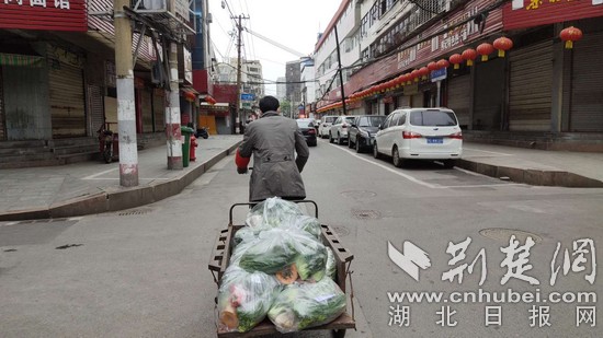 荊楚網(wǎng)客戶端—荊楚網(wǎng)消息(記者王焱堯、熊子璇)3月16日下午3時(shí)許,鄂州市委宣傳部唐波將重達(dá)1100斤、共計(jì)70份蔬菜從鄂州市古樓街道考棚社區(qū)十字街卡口,用三輪車運(yùn)送至熊家巷、許家巷,然后再轉(zhuǎn)運(yùn)至居民的樓下,通知訂菜居民下樓取菜。運(yùn)送完畢,汗流浹背。