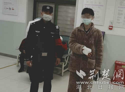 接警后,覃濼與輔警鄭菁立即趕至現(xiàn)場(chǎng)??紤]到疫期出行不便,在確認(rèn)男子無(wú)發(fā)熱等癥狀后,覃濼駕車(chē)將男子送往附近醫(yī)院。在覃濼的陪同下,男子傷口處縫了15針,男子家屬對(duì)覃濼的及時(shí)救助與悉心陪伴表示十分感謝。