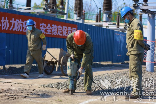 當天上午10點,在110千伏燕磯變電站院內(nèi),變電項目負責人、鄂州工匠吳斌正在用"電動風鎬"進行地面的開挖,“我們要在變電站增加一條110千伏的出線間隔,送給新建的花馬湖變電站供電?!眳潜笳f。同時,在線路部分同步進行1號至4號鐵塔的基礎施工。