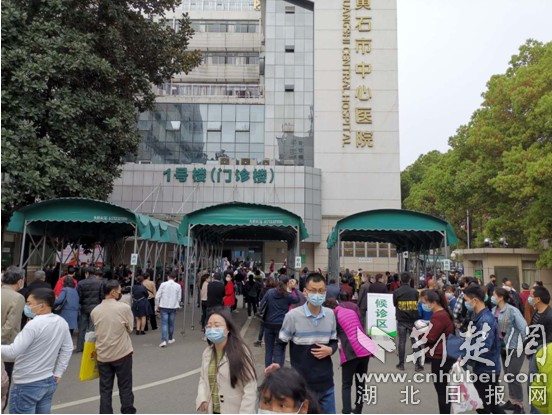 黃石市中心醫(yī)院中心院區(qū)門診大樓前候診區(qū)。通訊員供圖