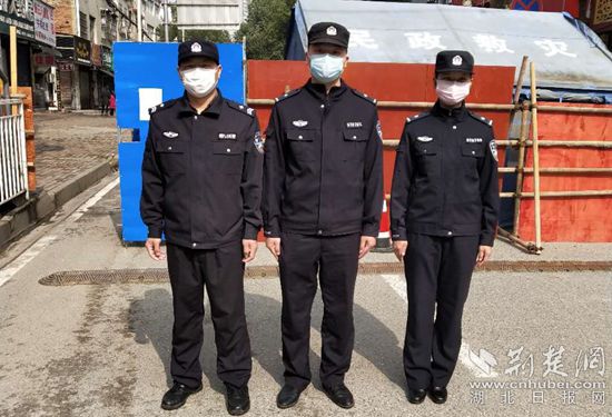 楊鑫(中)疫情期間與同事在執(zhí)勤。(通訊員供圖)