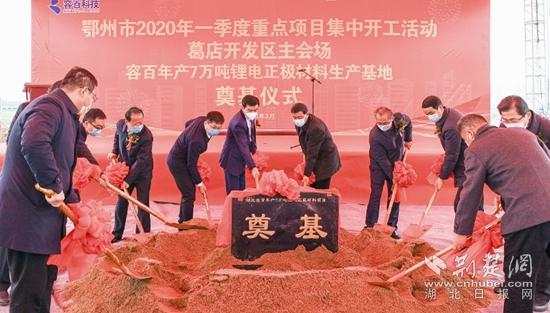 3月30日上午10時(shí)30分,鄂州市2020年一季度重點(diǎn)項(xiàng)目集中開工活動鄂州市葛店經(jīng)濟(jì)技術(shù)開發(fā)區(qū)主會場旌旗招展,年產(chǎn)7萬噸鋰電正極材料生產(chǎn)基地奠基。