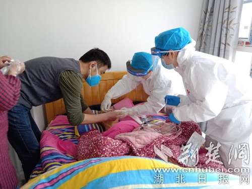 張院長深知,如果胃管和導尿管長時間不更換會造成感染,后果非常嚴重。掛掉電話后,他立馬組織中心醫(yī)護人員上門了解情況,并派人前往市中心醫(yī)院調(diào)配胃管更換材料,第一時間上門為孫潤平的母親更換胃管和導尿管。即使是在中心社區(qū)防疫工作非常繁重的情況下,醫(yī)護人員也還是堅持多次上門,免費為孫潤平母親及時更換胃管和導尿管,并耐心地向?qū)O潤平家屬普及長期臥床病人護理知識。