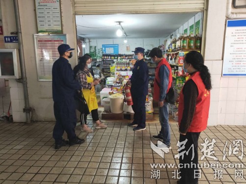 志愿者督導(dǎo)商戶防疫工作。通訊員供圖
