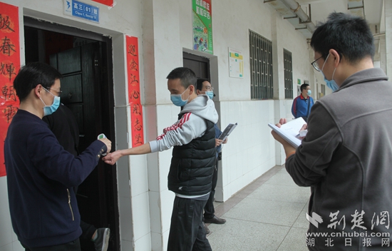 “學生之間要保持1米以上的間距,校門口要有專人引導學生有序進入學校,并做好體溫檢測工作,發(fā)現(xiàn)異常,立即按照預(yù)案處置?!鳖I(lǐng)頭的民警走到校門口后,自覺接受安保人員的體溫檢測,結(jié)果顯示正常后進入校內(nèi),他一邊走,一邊提醒著現(xiàn)場人員。