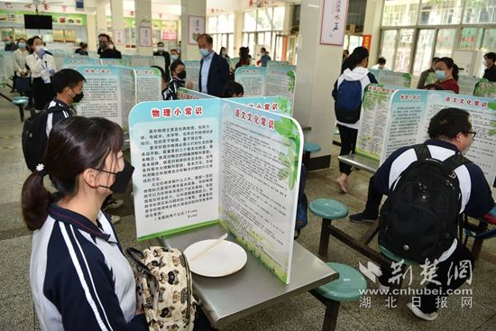 記者看到,有語文、數(shù)學、外語、物理、化學、生物、政治、歷史和地理九門課的知識點,還有個人衛(wèi)生習慣方面的小建議。學生每天吃飯輪著挑座位,可以看完老師們精心準備的九大學科重點。