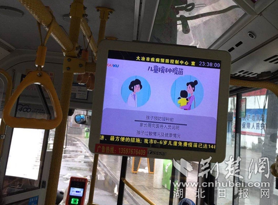 活動(dòng)當(dāng)天,黃石市預(yù)防接種單位通過張貼海報(bào),發(fā)放宣傳單,LED屏幕滾動(dòng)顯示,微信公眾號信息發(fā)布,網(wǎng)絡(luò)信息告知等方式進(jìn)行預(yù)防接種的政策、科普知識宣傳。同時(shí),該市在電視媒體《新聞直播車》進(jìn)行了預(yù)防接種相關(guān)知識的問答;大冶市選擇公交媒體宣傳方式,從4月22日起,連續(xù)一周在城區(qū)4條公交主干線的66臺公交車顯示屏上滾動(dòng)播放預(yù)防接種宣傳視頻。