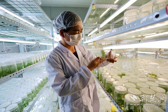 湖北小野生物科技有限公司科技人員在觀察培植白芨種苗。通訊員供圖