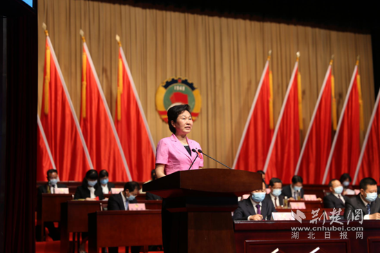 黃石市政協(xié)主席周蔚芬作政協(xié)工作報告。記者 胡小軍 攝