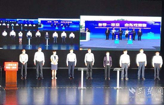 濟南、黃岡兩地視頻連線,舉行《魯鄂支持貧困勞動力外出務工暨勞務協(xié)作幫扶協(xié)議》簽約儀式。記者胡小軍 攝