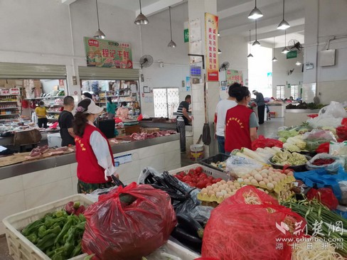 現(xiàn)場,防疫巡邏隊對落架坪集貿(mào)市場、沿街門店進行巡查。檢查公共場所日常消毒、通風換氣、人員進出登記管理、體溫檢測、垃圾收集處理等工作是否到位,督促外出人員正確佩戴口罩。