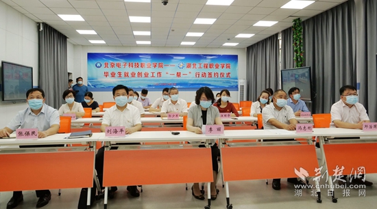 6月3日上午,湖北工程職業(yè)學(xué)院——北京電子科技職業(yè)學(xué)院舉行畢業(yè)生就業(yè)創(chuàng)業(yè)工作“一幫一”行動簽約儀式。(石雋哲 制作)