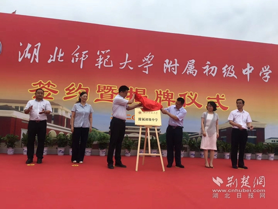 6月9日上午,黃石市舉辦教育項(xiàng)目建設(shè)現(xiàn)場推進(jìn)會暨市校合作辦學(xué)簽約儀式。會上,湖北師范大學(xué)和黃石開發(fā)區(qū)?鐵山區(qū)簽約共建湖北師范大學(xué)附屬初級中學(xué),并舉行了揭牌儀式,標(biāo)志著黃石校地合作辦學(xué)邁出了實(shí)質(zhì)性的一步。