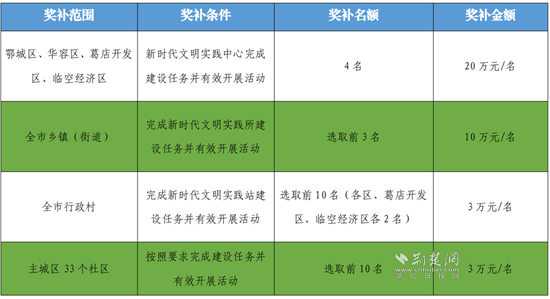 鄂州市新時(shí)代文明實(shí)踐(所、站)建設(shè)以獎(jiǎng)代補(bǔ)標(biāo)準(zhǔn)。(記者 呂鑒蕾 制作)