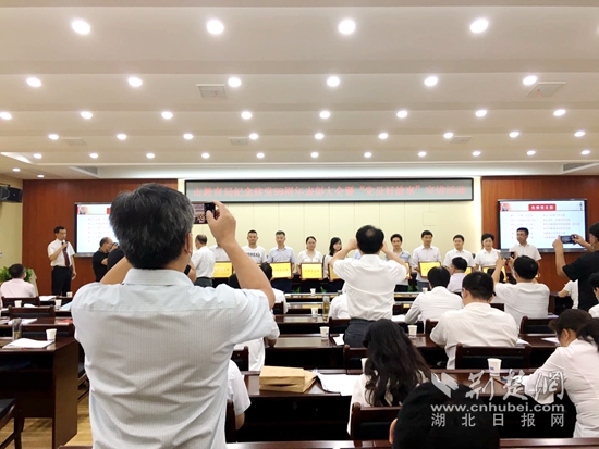 黃石一中第二黨支部等12個支部被授予“先鋒黨支部”稱號。(記者 呂鑒蕾 攝)