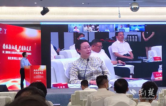 黃岡市委副書記、市長(zhǎng)邱麗新與山東省知名企業(yè)負(fù)責(zé)人現(xiàn)場(chǎng)連線。記者胡小軍攝