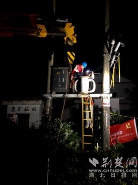 找出故障后,梁子湖區(qū)供電公司連夜從倉庫調(diào)出一臺(tái)100千伏安變壓器,在黑夜里經(jīng)過現(xiàn)場作業(yè)人員拆解、起吊、安裝等一系列步驟后,新的變壓器終于安裝完畢。