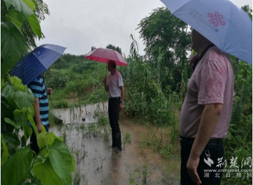 實(shí)地了解被淹農(nóng)田情況。通訊員供圖