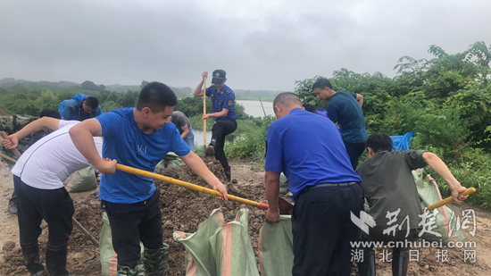 7月8日,因富水水庫、王英水庫泄洪,導(dǎo)致三溪鎮(zhèn)和軍墾農(nóng)場積水嚴(yán)重,黃石市陽新浮屠鎮(zhèn)外南坦湖下游正處于兩個位置的水域交匯處,隨時有漫堤危險。但因各村不同程度受災(zāi),一些村級應(yīng)急隊員忙于本村防汛工作、抽不開身。關(guān)鍵時刻,該鎮(zhèn)張畈村主職助理石峰主動請纓,并動員周邊幾個村的主職助理一同加入應(yīng)急隊伍。