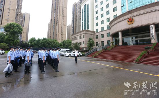 黃岡公安43人特警預備隊集結出征防汛。(通訊員供圖)
