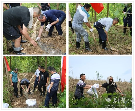 “這里有一處堤壩出現(xiàn)了塌方,隨時都有破堤的危險,我們必須趕緊處理!”7月6日清晨,天剛蒙蒙亮,正在巡邏的駐村稅務(wù)干部朱必武、陳林、劉應(yīng)雄發(fā)現(xiàn)舒畈村村組水塘的堤壩處出現(xiàn)了塌方,立即組織展開搶險救災(zāi)行動。