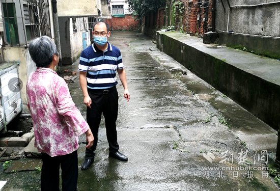 車(chē)錄彬(右)巡查社區(qū)排水情況。(通訊員 供圖)