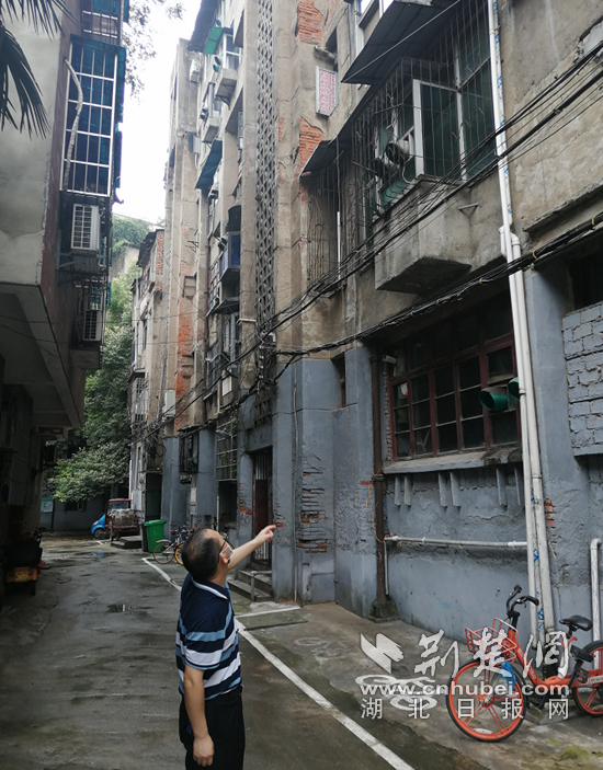 車(chē)錄彬在排查社區(qū)老舊房子高空墜物風(fēng)險(xiǎn)。(通訊員 供圖)