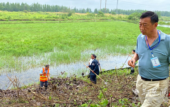 徐小青參與責(zé)任堤段除草除雜。(通訊員供圖)
