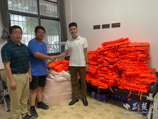 “前幾天在荊楚網(wǎng)上看到了我們樟鋪村老支書柯于州的防汛事跡,也通過樟鋪村黨員微信群了解到家鄉(xiāng)的汛情,黨員干部紛紛奔赴一線,日夜在水庫、大堤上巡防值守,我人雖在外,但是心一直跟親人們在一起,這些救生衣希望能給一線的同志們多一分安全保障?!辈苡乱贿叞嶂壬乱贿呎f。