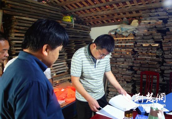 麻城市委常委、市紀(jì)委書記、市監(jiān)委主任張飛雄在值班室查看巡堤記錄。(通訊員供圖)