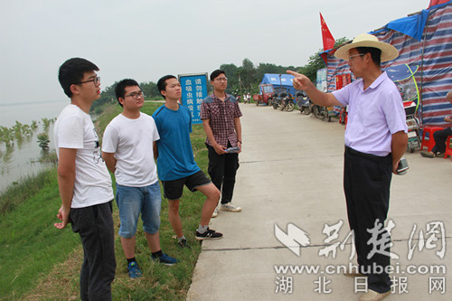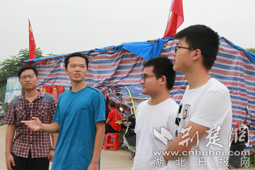 13日晚上,他跟村支書交流時得知,長江大堤上人手緊張。他當(dāng)即召喚武漢科技大學(xué)程進(jìn)、黃岡科技職業(yè)技術(shù)學(xué)院姜顥南以及剛高三畢業(yè)的熊偉等3名同學(xué)一起,參與防汛保堤任務(wù)。