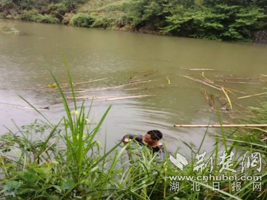 7月7日早晨,大同鎮(zhèn)國土資源所駐村工作隊徐朝華、彭方云在村防汛巡查時,發(fā)現(xiàn)三組半山垸牛頭池塘水位嚴(yán)重超出警戒線,而當(dāng)時池塘底閘嚴(yán)重堵塞,隨時都有沖垮的危險。見此情形,彭方云沒有任何猶豫,他縱身躍入十余米深的大塘,借助岸邊附著物浮在水面上,然后騰出手來掏開殘渣。半小時后,終于順利打開塘閘,排除了危險。