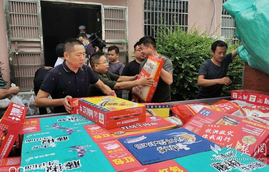 愛心企業(yè)為黃梅縣一線防汛人員捐贈物資。通訊員供圖