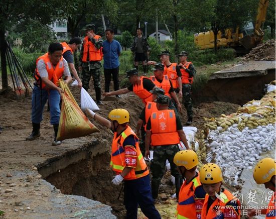 到上午10:00,天氣暫時放晴,但洪水依然在河流中奔涌咆哮?!巴緜?,下午1:00可能又會有大暴雨,請抓緊有利時機,盡快堵上缺口,堅持就是勝利!”看著交通運輸部門調(diào)來了挖機、鏟車等機械設(shè)備,南方來不及擦拭滿臉的汗珠,抓緊給大家加油鼓勁。