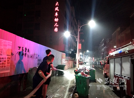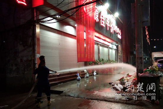 消防員對路面進(jìn)行沖洗。(通訊員供圖)