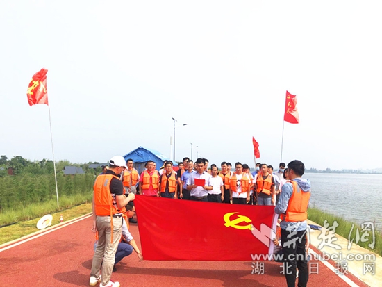 黃石市國資公司在大冶湖堤開展聯(lián)合“主題黨日”。(通訊員供圖)