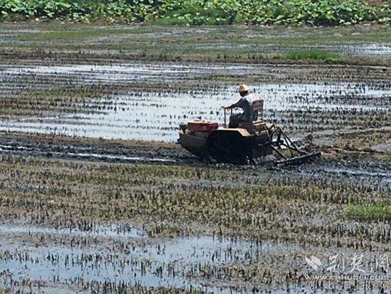荊楚網(wǎng)客戶端—荊楚網(wǎng)消息(通訊員張丕興)當前正是災后恢復生產(chǎn)、搶抓農(nóng)時改種補種的關鍵時期,7月25日,陽新縣半壁山農(nóng)場上賽湖社區(qū)種糧大戶王燕民,為了減少水災帶來的損失,組織10多名工人對承包的390畝水田進行“早翻秋”改種,當天,稻種已經(jīng)全部落泥。