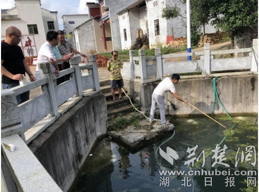 為扎實做好飲用水源消毒工作,專業(yè)人員分別對村內(nèi)多個飲用水源的源頭和水井進行了清理,清除井內(nèi)水藻等污物,采用消毒瓶懸掛和噴撒漂粉精片的方式殺滅水源中的腸道等致病菌,并入戶為村里的貧困戶、五保戶打掃環(huán)境衛(wèi)生及消毒飲用水井。同時,在全村張貼宣傳海報十余張,向村民發(fā)放宣傳單及折頁200余份,大力宣傳搞好環(huán)境衛(wèi)生,注意飲水安全的重要性。