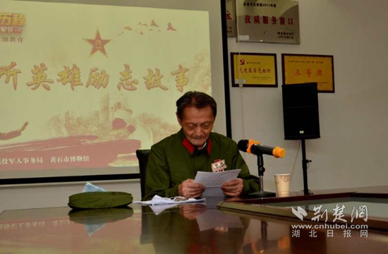 8月1日下午,黃石市退役軍人事務(wù)局、黃石市博物館聯(lián)合舉辦了“致敬英雄——我是中國少年”愛國主義主題教育活動,為“八一”建軍93周年獻禮祝福。抗美援朝老兵吳仁給小朋友們講革命戰(zhàn)斗故事。(通訊員供圖)