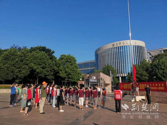 7月26日上午,杭州東路社區(qū)開展“雛鷹展翅·獻禮建軍”主題活動,轄區(qū)32名青少年參加了為期半天的軍訓(xùn)。少先隊員們在國旗下宣誓。(通訊員供圖)
