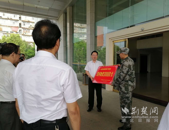 7月30日上午,黃石市委書記董衛(wèi)民(右二)慰問黃石軍分區(qū)。(通訊員供圖)