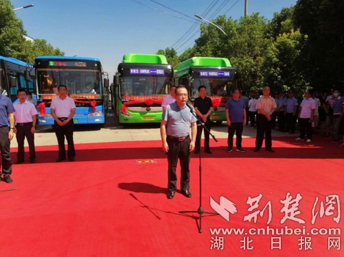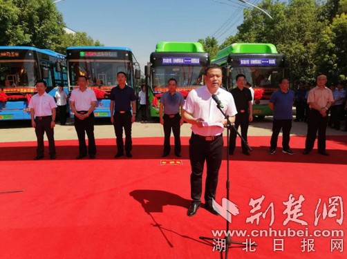 大冶市委副書記、市長周軍宣布大冶市公交直達(dá)黃石臨空經(jīng)濟(jì)區(qū)正式通車。通訊員供圖